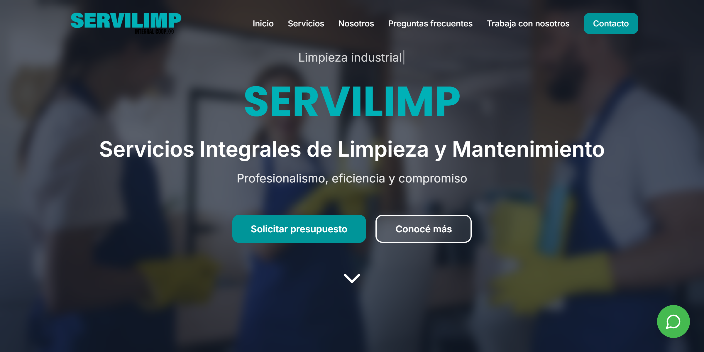 Página institucional para cooperativa de limpieza y mantenimiento, destacando servicios integrales y enfoque cooperativo.